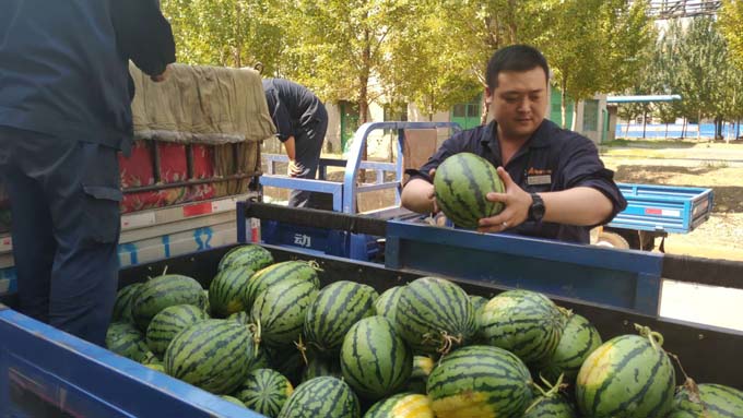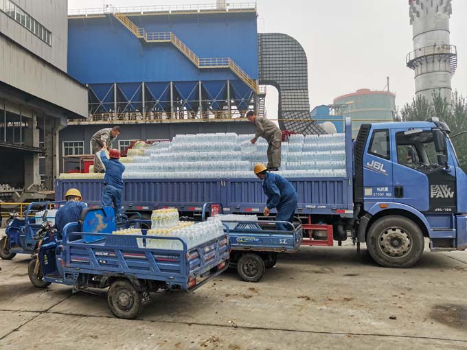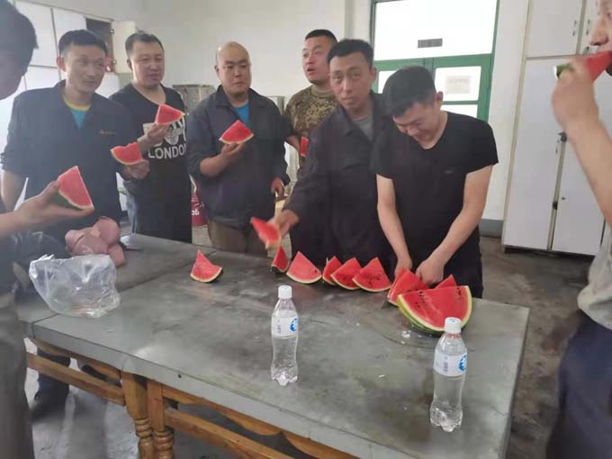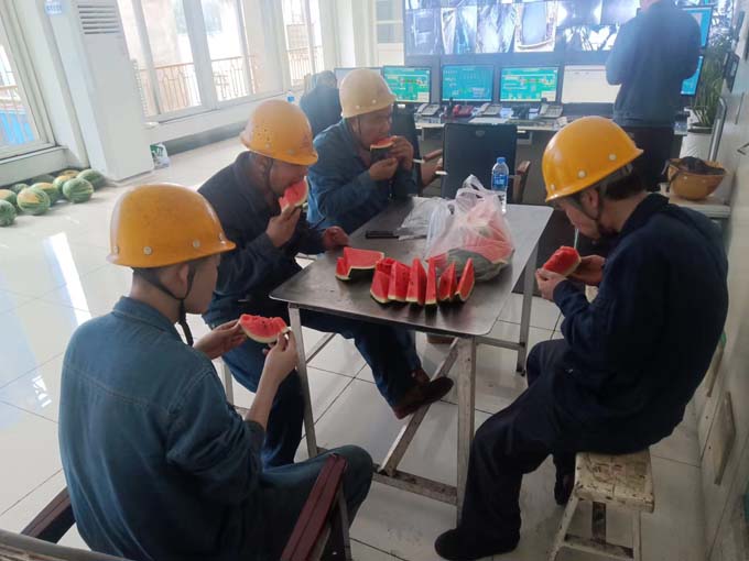 廠房里,公司工會為奮戰(zhàn)在一線的職工發(fā)放清涼解署的鹽汽氣和西瓜,給大家送去一份夏日的清涼。工會主席叮囑職工要注意生產(chǎn)安全,合理安排作息時(shí)間,做好防暑降溫工作。