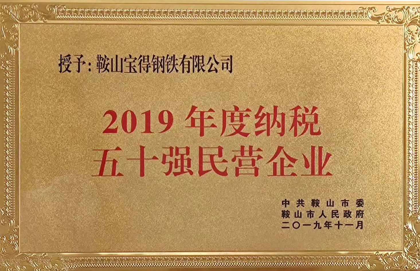 ![]() 2019年度鞍山市納稅五十強民營企業(yè) |