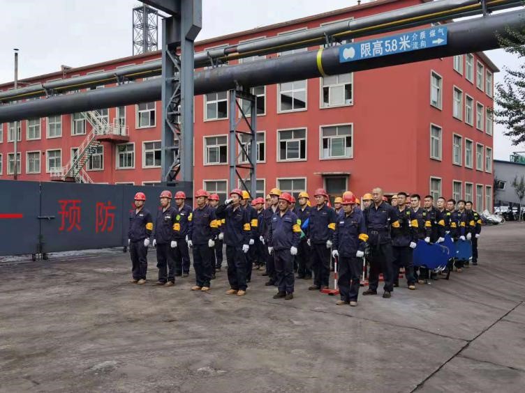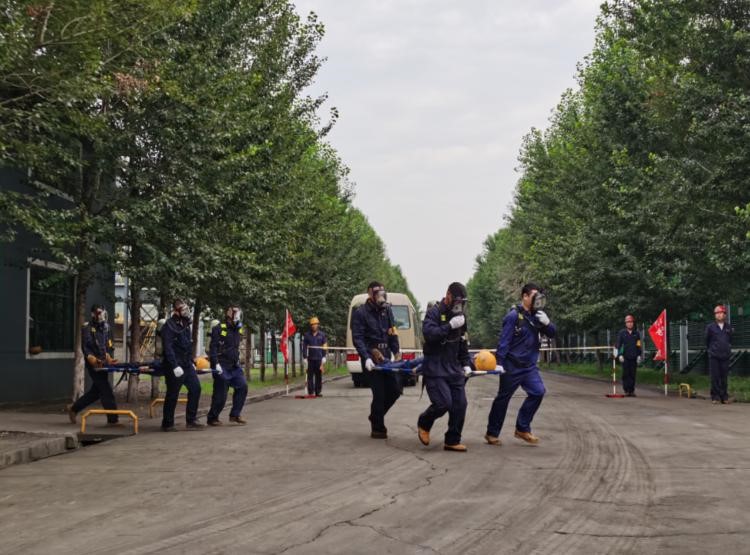 “報告馬廠長:我是當(dāng)班維護班長曹雷,9點35分左右班內(nèi)三名員工在煤氣閥組平臺巡檢過程中發(fā)生煤氣中毒事故,請求立即支援”……;“請搶險救援組、安全警戒組、醫(yī)療救護組…立即趕赴事故現(xiàn)場集結(jié)”;“報告總指揮:搶險救援組10人到達現(xiàn)場,6套呼吸器及3副擔(dān)架救援裝備完好,可正常使用”……;“各救援小組按預(yù)案規(guī)定程序及商定的實施方案,立即展開救援行動”……;“報告總指揮:三名傷者已成功救出,兩人中毒較重,一人較輕,……”;“報告總指揮:煤氣泄漏部位搶修完畢,已無泄漏現(xiàn)象,設(shè)備可正常運行”……。隨著一條條救援指令的下達,現(xiàn)場警戒、現(xiàn)場救援、傷員急救、設(shè)備搶修、現(xiàn)場清理及組織生產(chǎn)恢復(fù)等過程緊張、有序地完成,實戰(zhàn)演練圓滿結(jié)束。